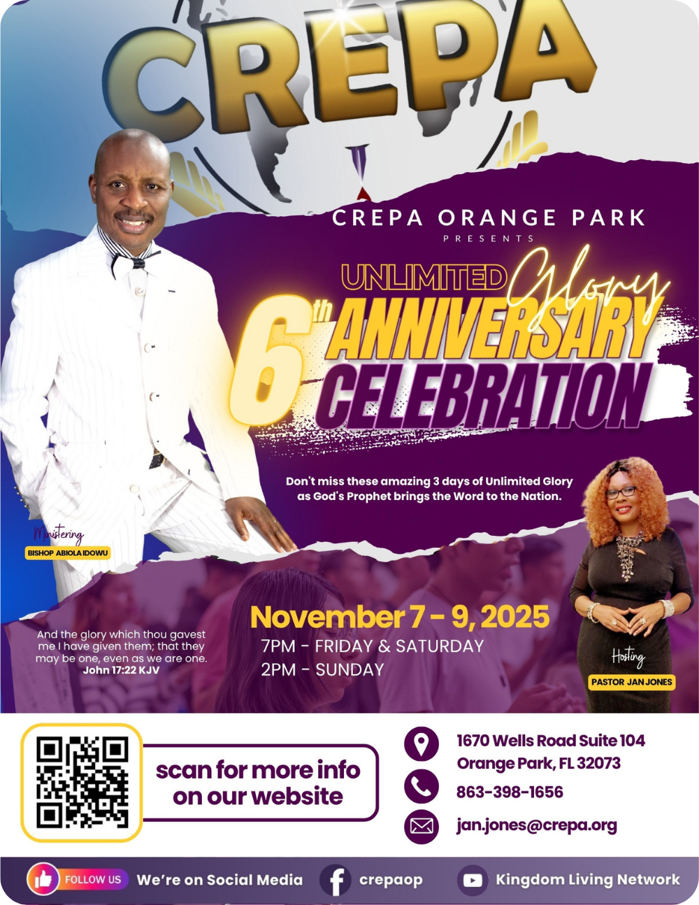 With a heart for God and people, Pastor Jan is excited to keep leading CREPA Orange Park into a season of growth, unity, and impact.